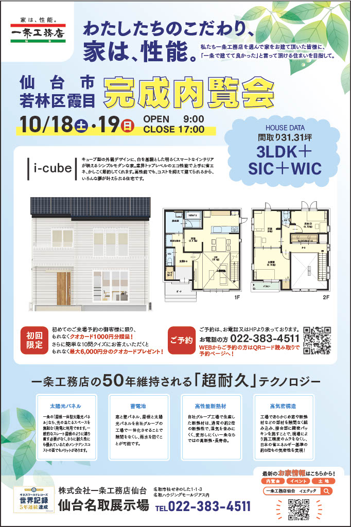 🏡若林区霞目にて完成見学会開催📣✨ 一条工務店仙台