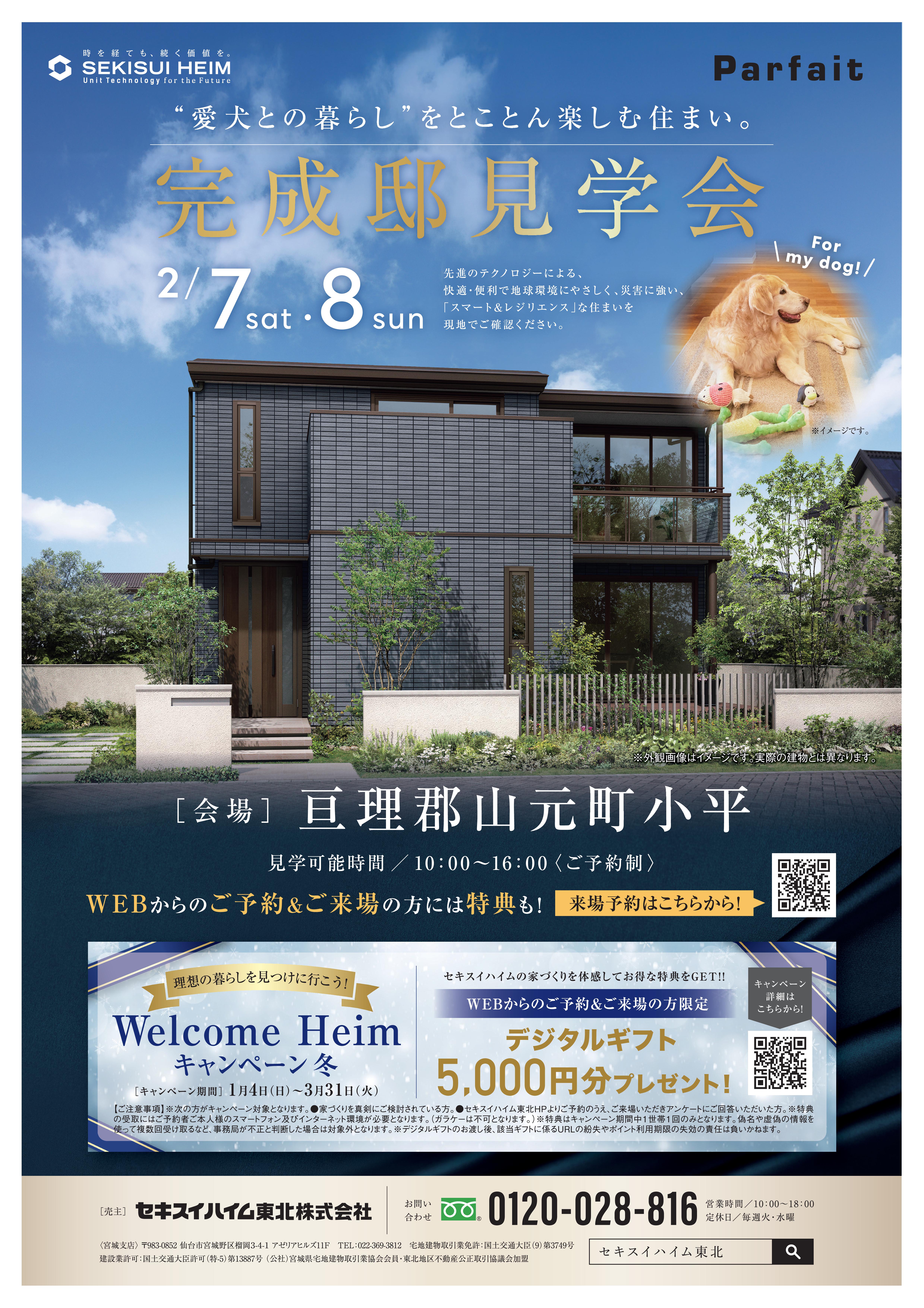 【2/7(土)・8(日) 亘理郡山元町小平 新築完成見学会】