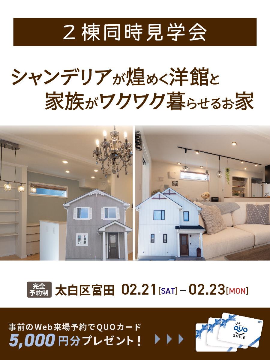 【2棟同時見学会】シャンデリアが煌めく洋館と家族がワクワク暮らせるお家 @富田