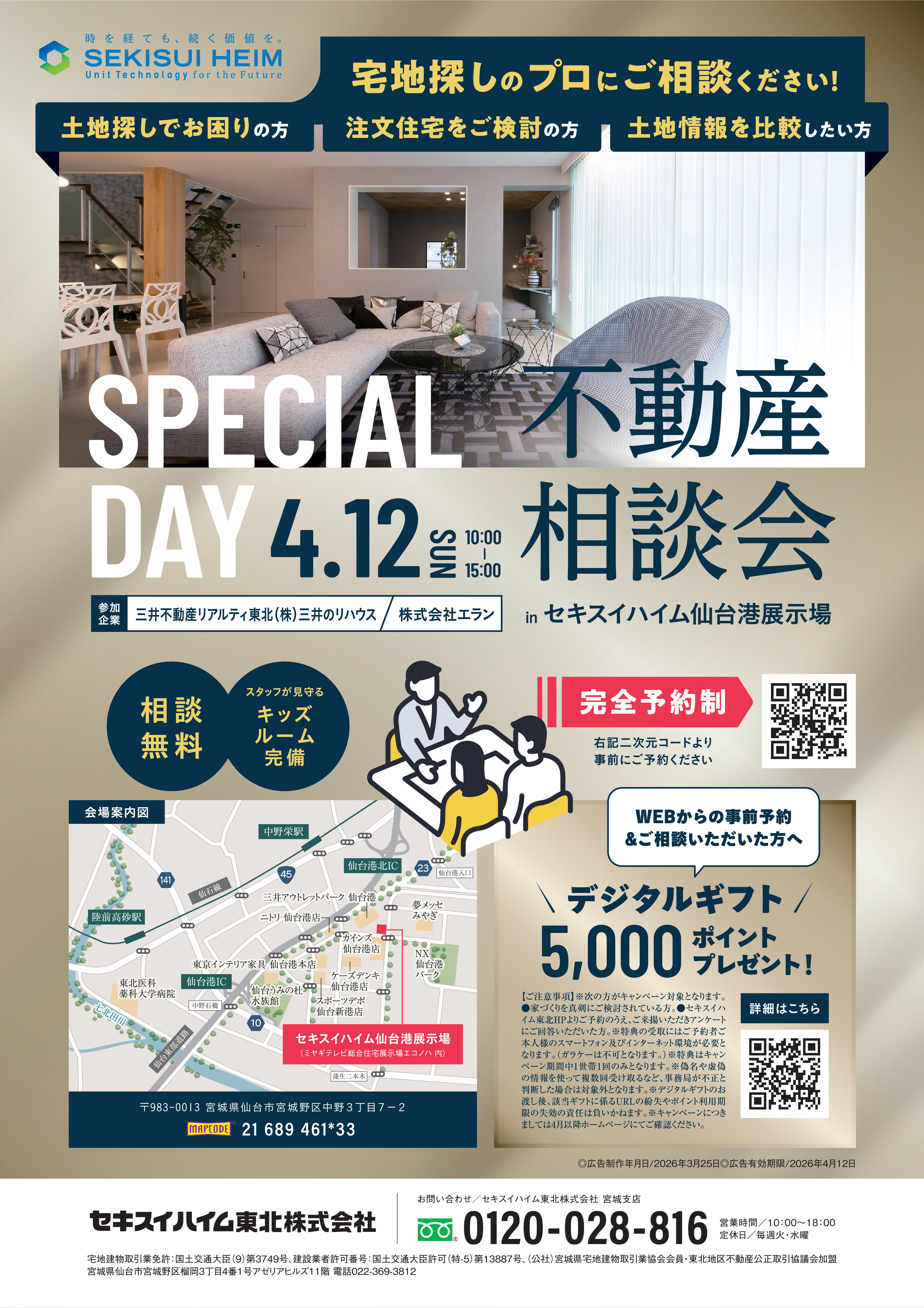 TEL:022-393-6138(セキスイハイム名取展示場)
