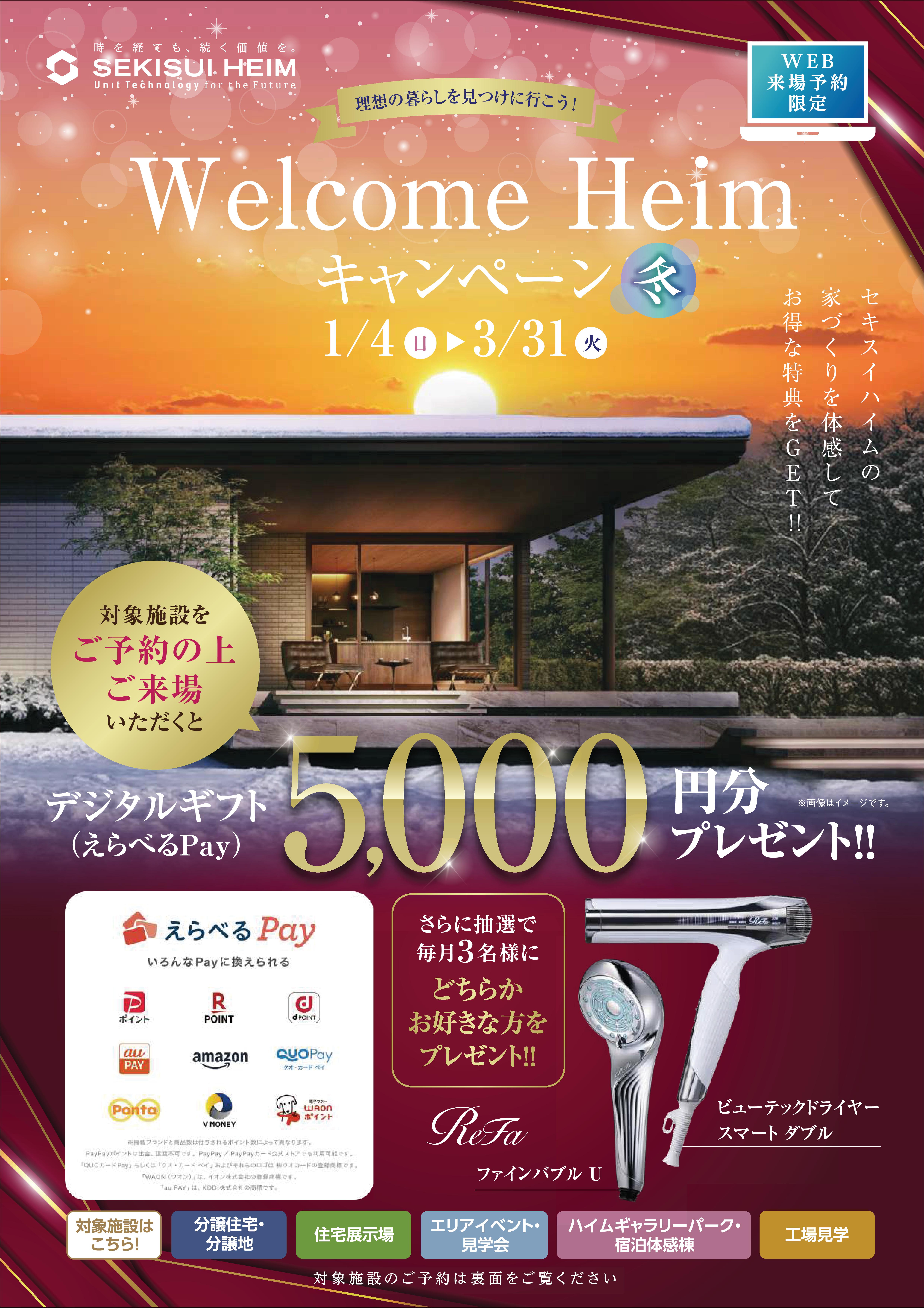 【来場特典5,000円分】Welcome Heimキャンペーン開催中!
