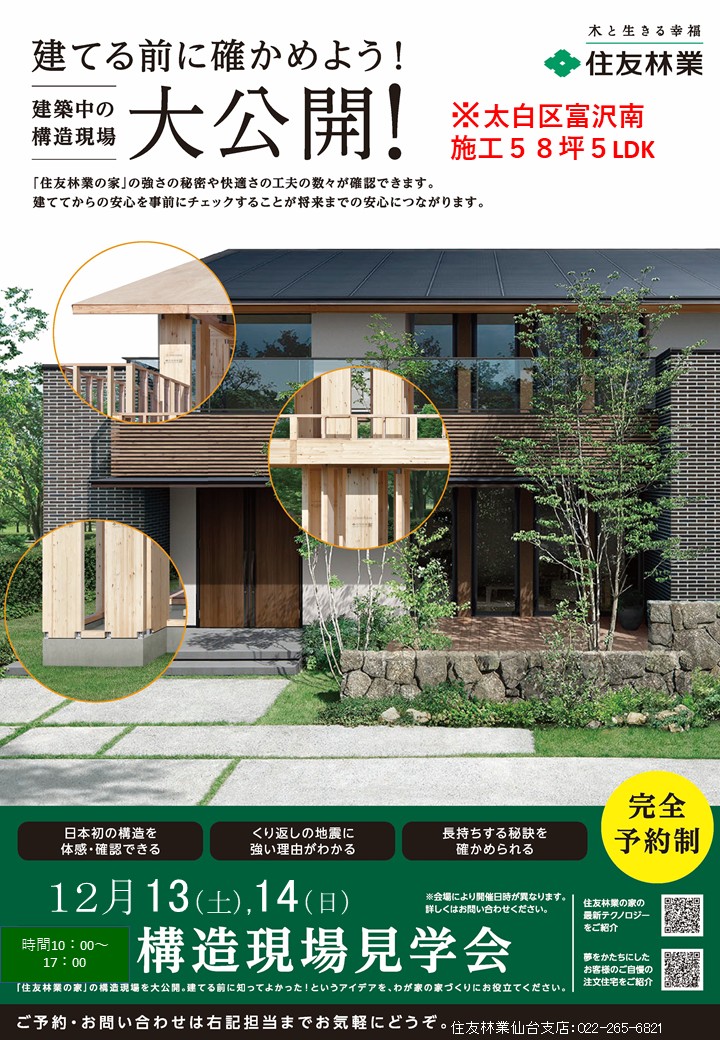 【仙台市太白区東郡山】 オーナー様邸見学会のご案内